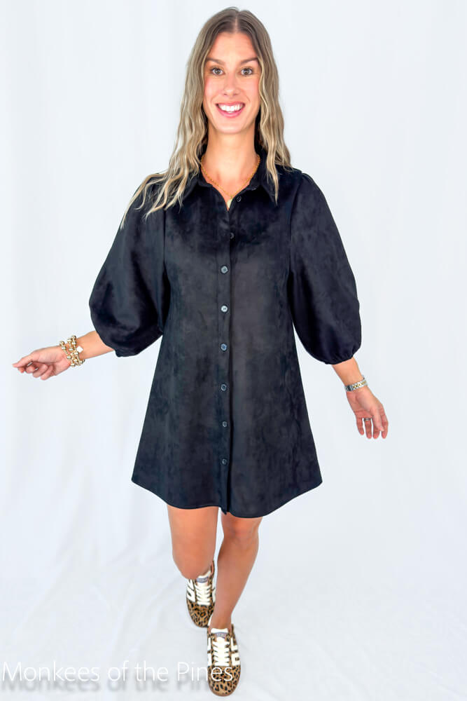 Faux Suede Dress Black