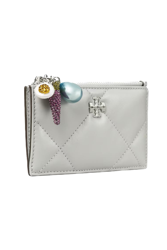 Tory Burch Kira Diamond Quilt Charm Zip Card Case Gray