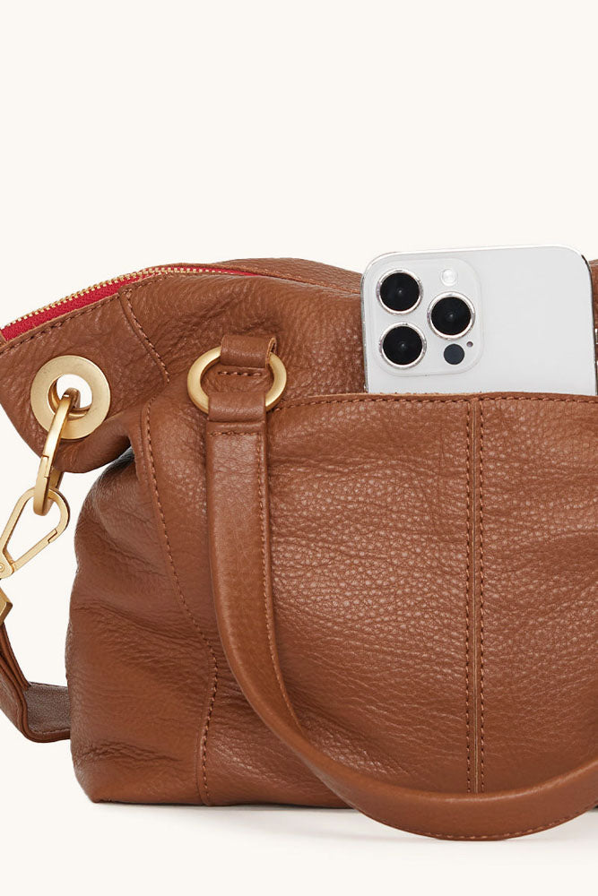 • Crafted with a soft pebbled leather with a hint of shine featuring a warm medium brown hue