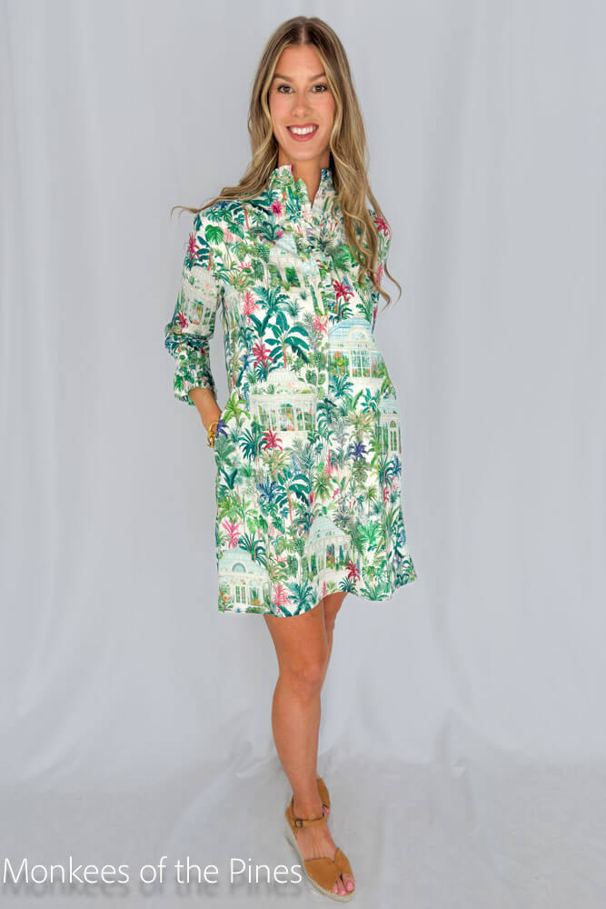 - High neck with ruffle detail