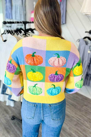 Queen of Sparkles Pastel Colorblock Pumpkin Button Up Cardigan