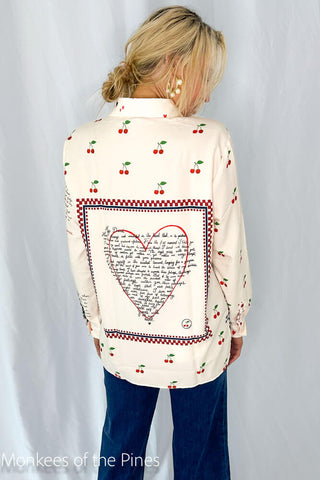 Alice & Olivia Willa Placket Top Shakespeare's Letter Vanilla