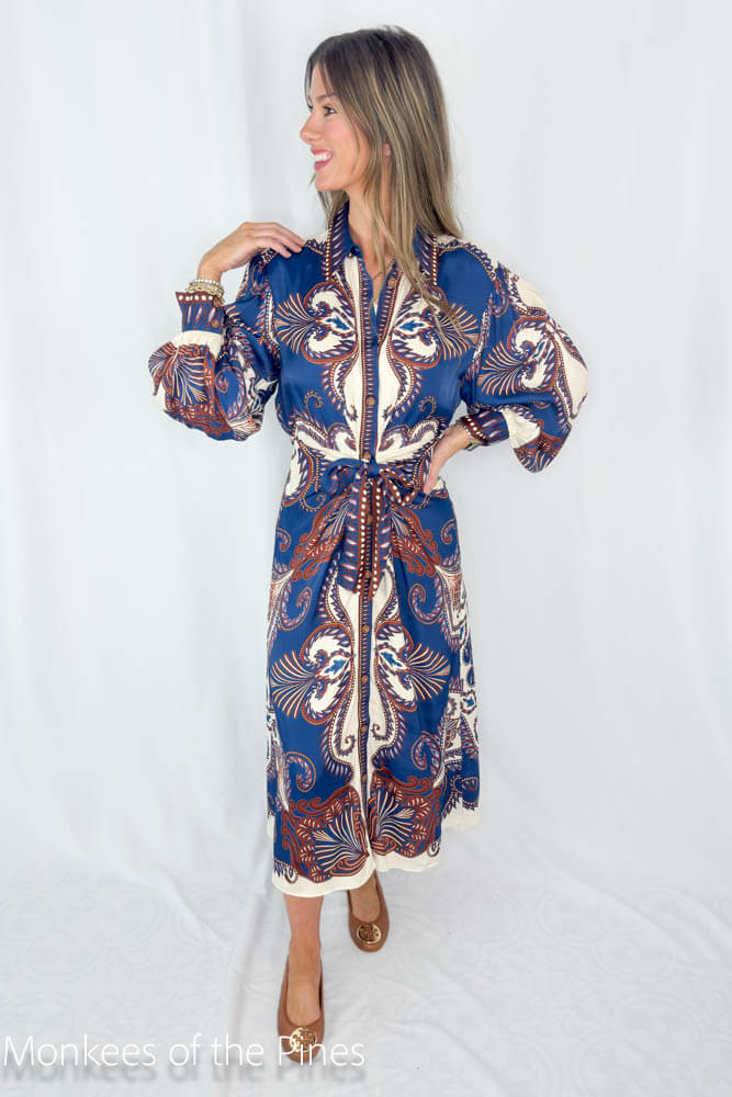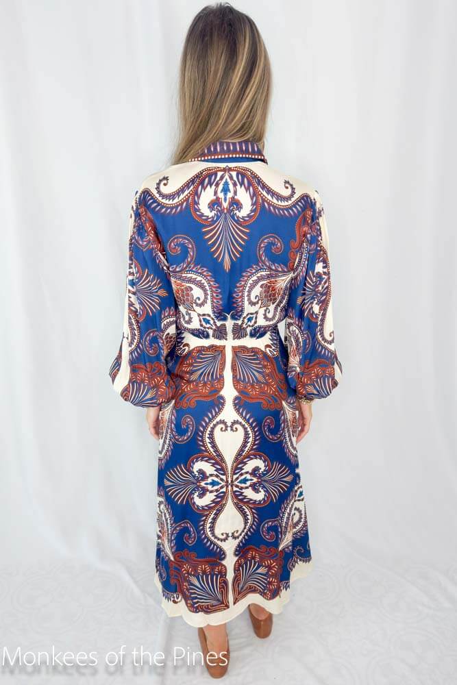 Farm Rio Arabesque Scarf Blue Midi Dress